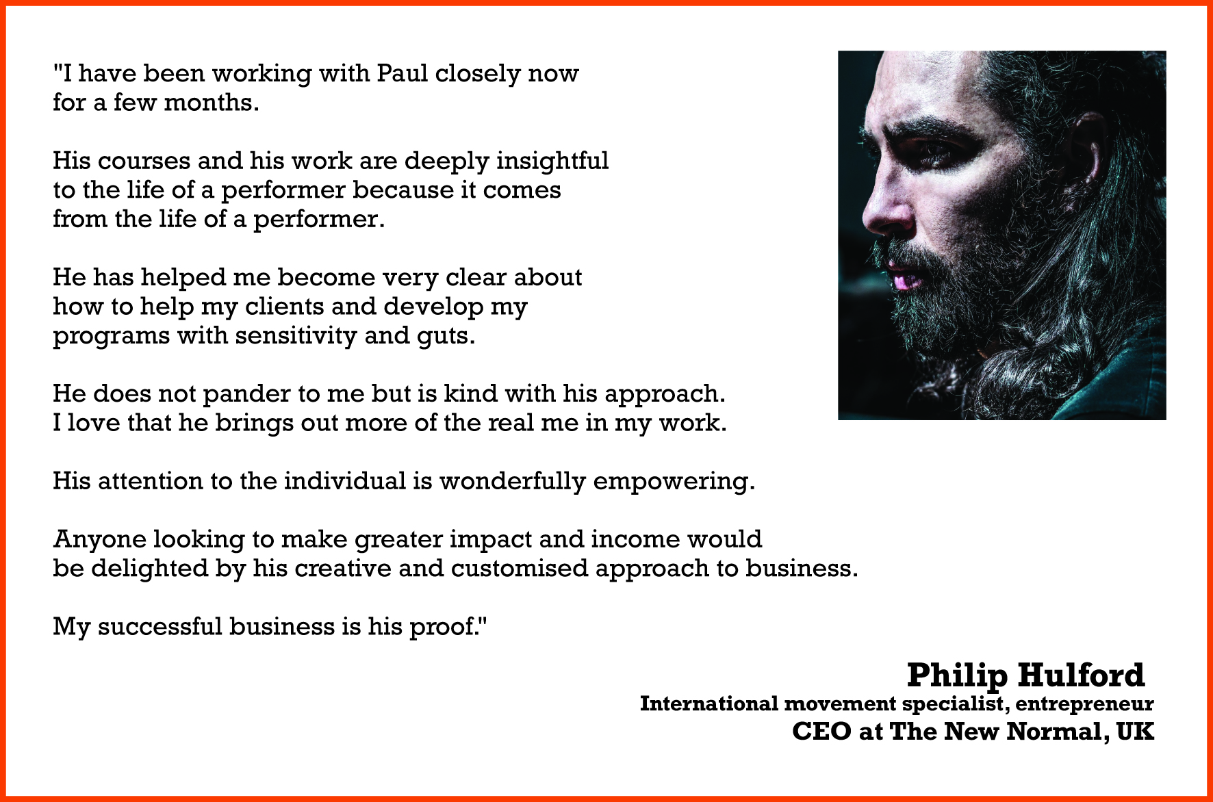 Rising to the level of international touring performer/creator of artistic work on tv shows and stages worldwide - yes, he's probably been on one of the larger shows in your country and stages in your area - Paul has been training others in the exact principles he uses himself.